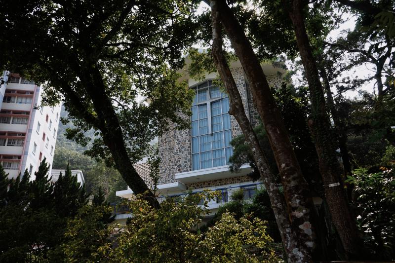 在树荫掩映下的崇基教堂。