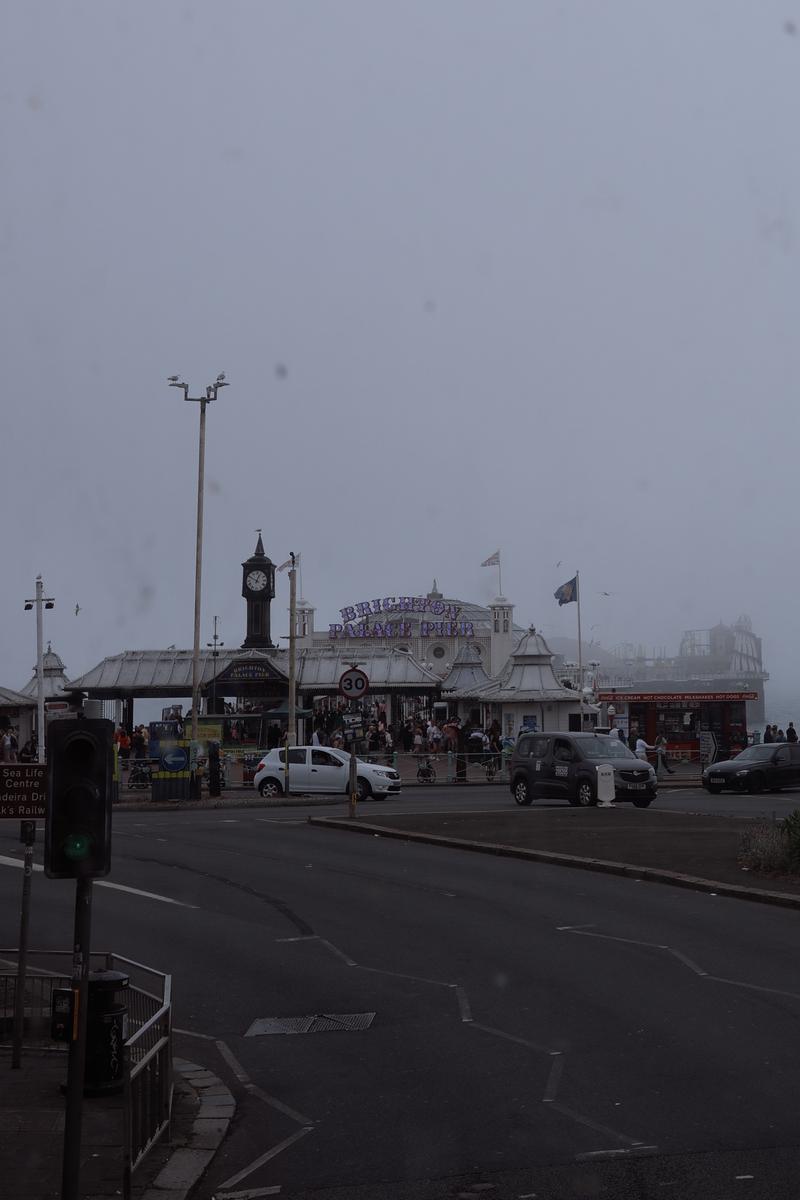 Brighton's Sea Pier Playground. In the thick fog, there is quite a scary atmosphere. But if you look at the pedestrians and busy traffic around you, you feel a little more relaxed, and what you see is just a set of a horror movie.